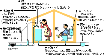 お使いになっている水量が多いと思われたら、次の箇所を点検してください。