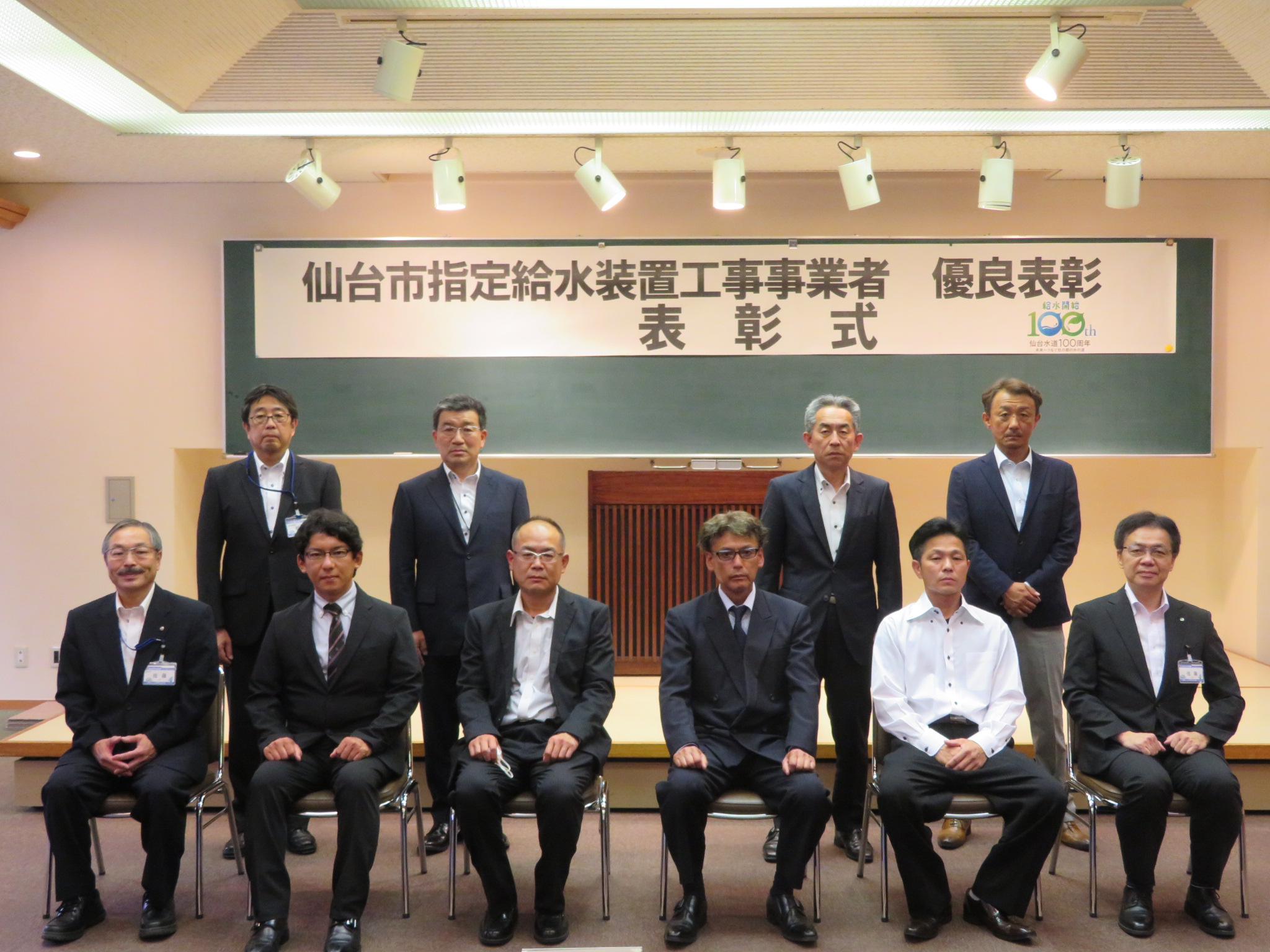 令和7年7月22日に、水道局大会議室において、仙台市の指定給水装置工事事業者(指定事業者)のうち、令和6年度の施工実績において特に誠実・優良な給水装置工事の施工を続けられた事業者を対象とした「給水装置工事部門」、及び漏水修繕等において市民サービスの最前線で活躍されている地元密着型水道修繕登録店を対象とした「修繕工事部門」の2つの部門を顕彰する「優良表彰表彰式」を開催しました。